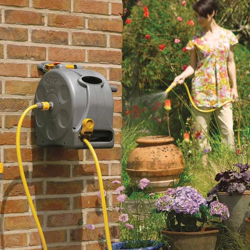 The Compact Reel has a 2-in-1 functions , meaning it can be wall-mounted or used as a free-standing reel so you can position it however you would like. This product is also strong and robust so will easily withstand hard-wearing gardening tasks, time after time making sure it last for years. Its easy rewind action and viewing window allows for full control and stress-free rewinding and the folding carry handle ensures the reel is fully portable. It easily clips onto a wall bracket and has a handle for smooth hose layering so putting it away is an easy and problem free task.