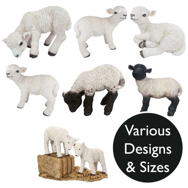 These lovable real life lamb ornaments from Vivid Arts will make a great addition to your home or garden decor. These detailed resin garden ornaments are frost resistant and can be displayed both indoors and outdoors. They come in in a range of designs and sizes, including sitting, standing and playing lambs.